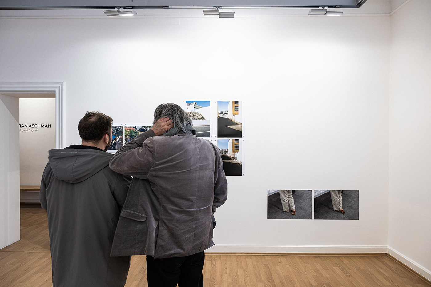 Interpellé par l'inclination de la nature humaine à se rassembler et à faire communauté, Aschman, lors de sa visite de l'exposition consacrée au photographe Wolfgang Tillmans en 2025, s'attache à observer des actions à peine perceptibles et des échanges indicibles, à partir desquels se dessine un portrait de groupe. Il fragmente la durée afin de saisir des attitudes, des regards, des micro-gestes — tantôt maîtrisés, comme une main qui se tend pour relier deux corps immobiles, tantôt involontaires, comme un pied qui glisse hors de sa sandale avant de la retrouver.